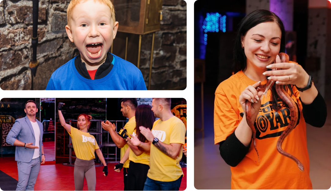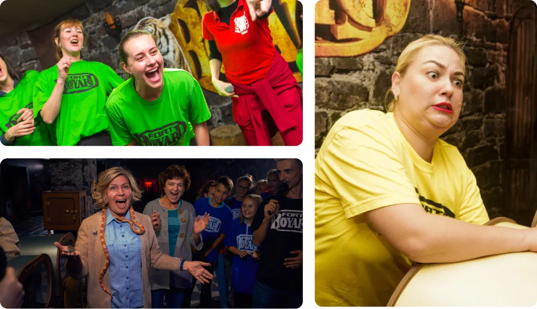 У нас можно получить непередаваемые эмоции и впечатления! Возраст участников от 6 лет, команда участников от 6 человек